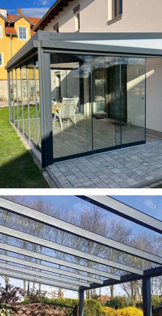 Die Dachkonstruktionen sind pflegeleicht, langlebig und kinderleicht einfahrbar – nur bei Sturm oder Schneefall ist das Einfahren erforderlich (keine Schneelast).